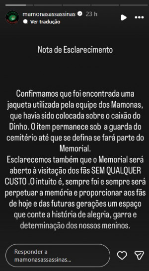 De acordo com a informação divulgada oficialmente nas redes sociais da banda, a peça de roupa usada foi encontrada em ótimo estado sobre o caixão. "O item permanece sob a guarda do cemitério até que se defina se fará parte do Memorial", referindo-se ao projeto de homenagem aos músicos.