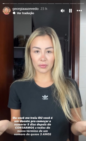 Segundo a influenciadora, a rapidez com que o cantor passou a exibir um novo romance surpreendeu e desagradou parte do público. Em suas publicações, ela ressaltou que, apenas 5 dias depois de oficializarem o término, o artista já estava aparecendo em stories ao lado de outra pessoa, o que, para ela, demonstrava falta de sensibilidade em relação à situação que viveram juntos.